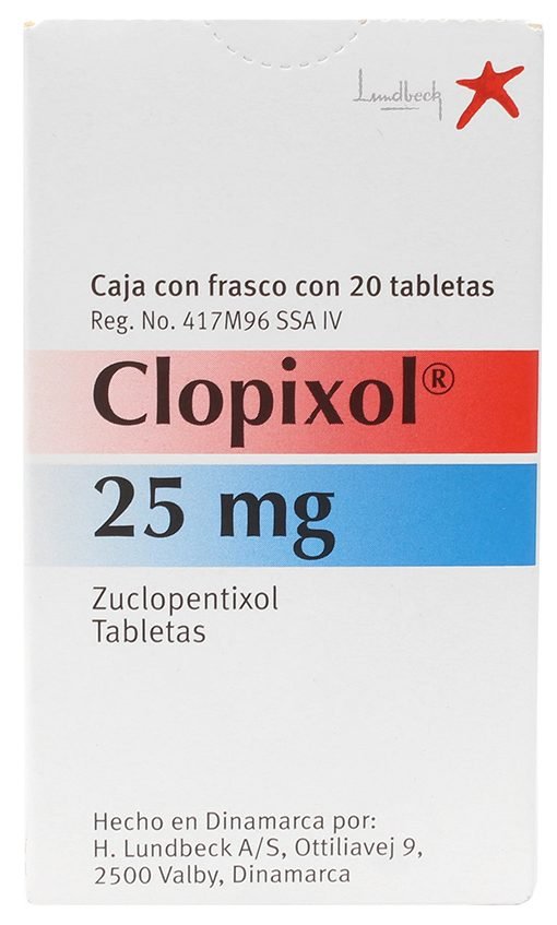 - Clopixol: Tabletas de 10 y 25 mg en frascos de distintas cantidades.